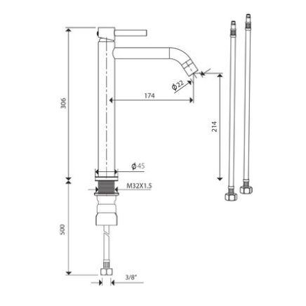 Długość węży połączeniowych 500 mm