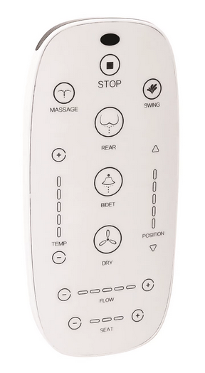 Do obsługi toalety myjącej masz przejrzysty pilot i innowacyjne przyciski sterujące z boku toalety.