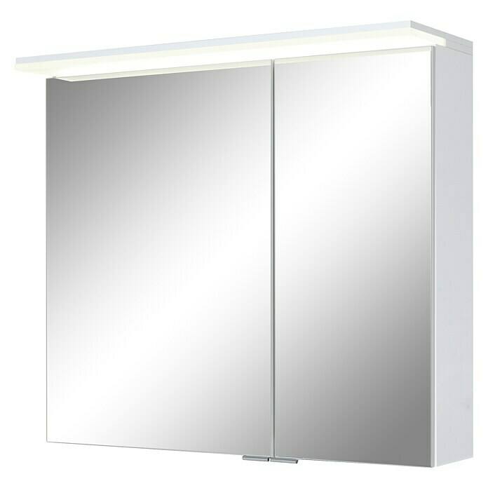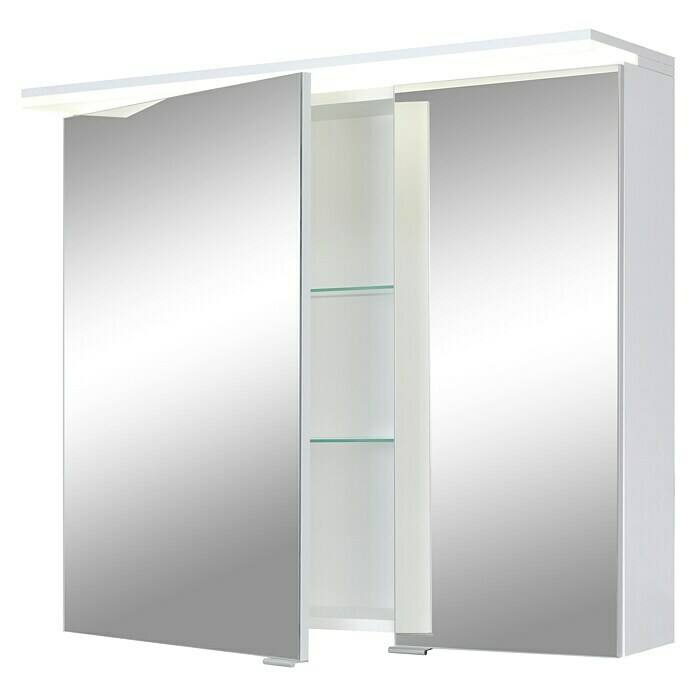 Kosmetyki i przybory pielęgnacyjne można schludnie schować za 2 eleganckimi lustrzanymi drzwiami, tworząc w łazience możliwie najlepszy porządek.